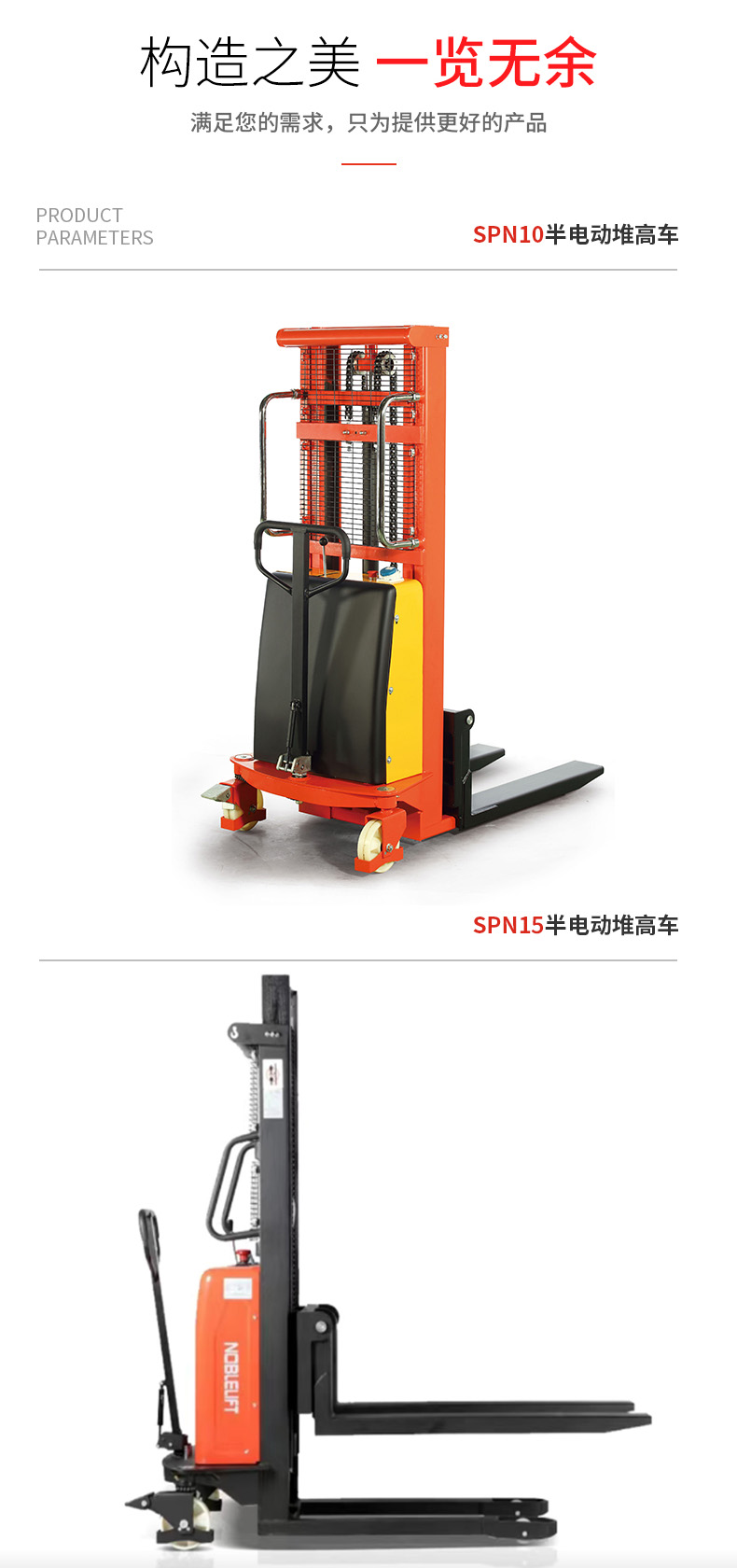 ● SPN系列半動堆高車式段距離搬運不行車輛,郵箱載荷可達1000kg/1500kg,提升高度大可達3500mm。特別適合在位置收到限制的使用場合,尤其在窄巷道中表現(xiàn)更為出色
