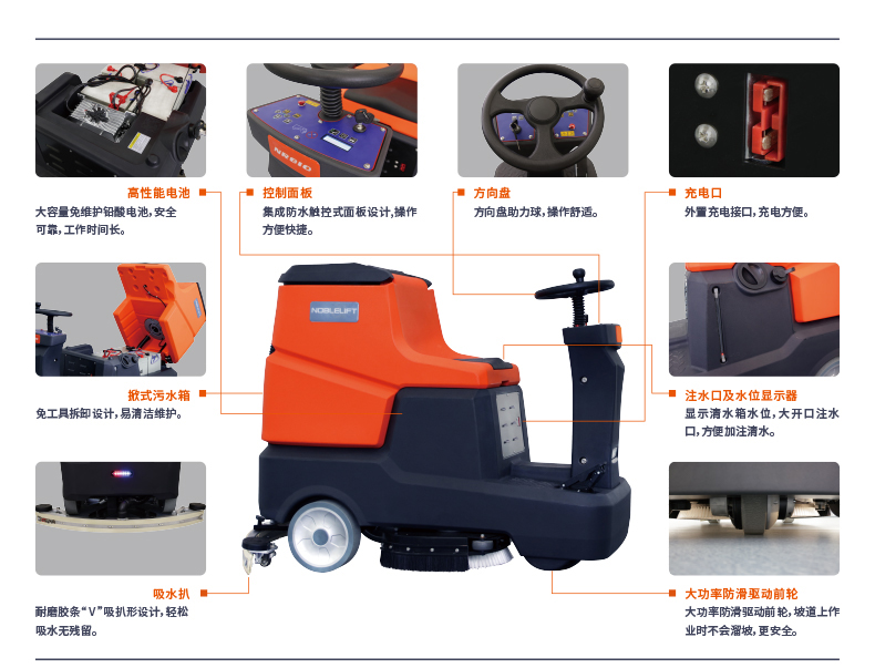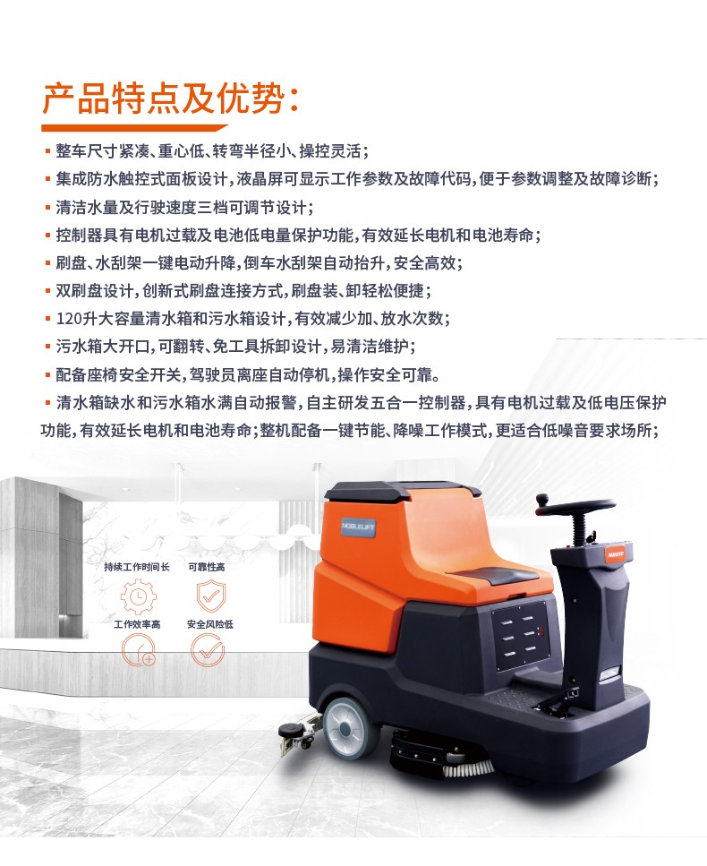 ● 清水箱缺水和污水箱水滿自動報警,自主研發(fā)五合一控制器,具有電機過載及低電壓保護功能,有效延長電機和電池壽命;整機配備一鍵節(jié)能、降噪工作模式,更適合低噪音要求場所